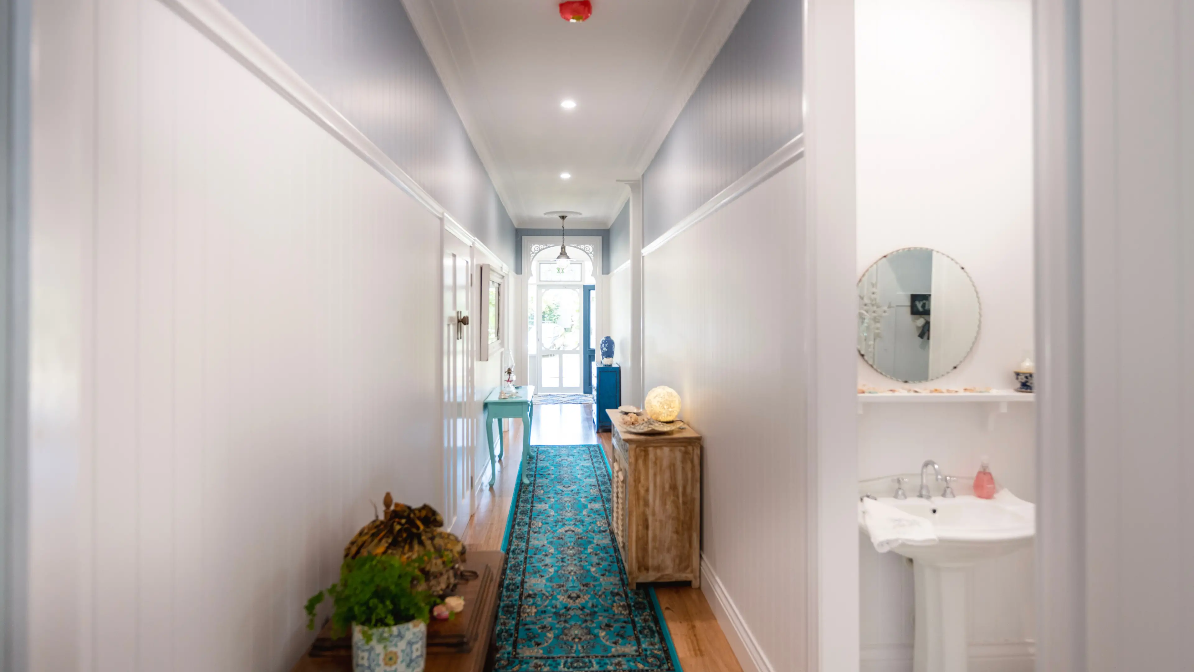 The interior of First Street benefits from bright, light and open spaces, designed with traditional high ceilings and finishings all meticulously crafted to achieve a rustic, yet modern aesthetic. Colonial features such as stained-glass windows, ceiling roses, picture rails, vintage light switches and power points, federation style skirting boards, architraves and V-groove wall panelling feature throughout, along with stunning timber flooring.