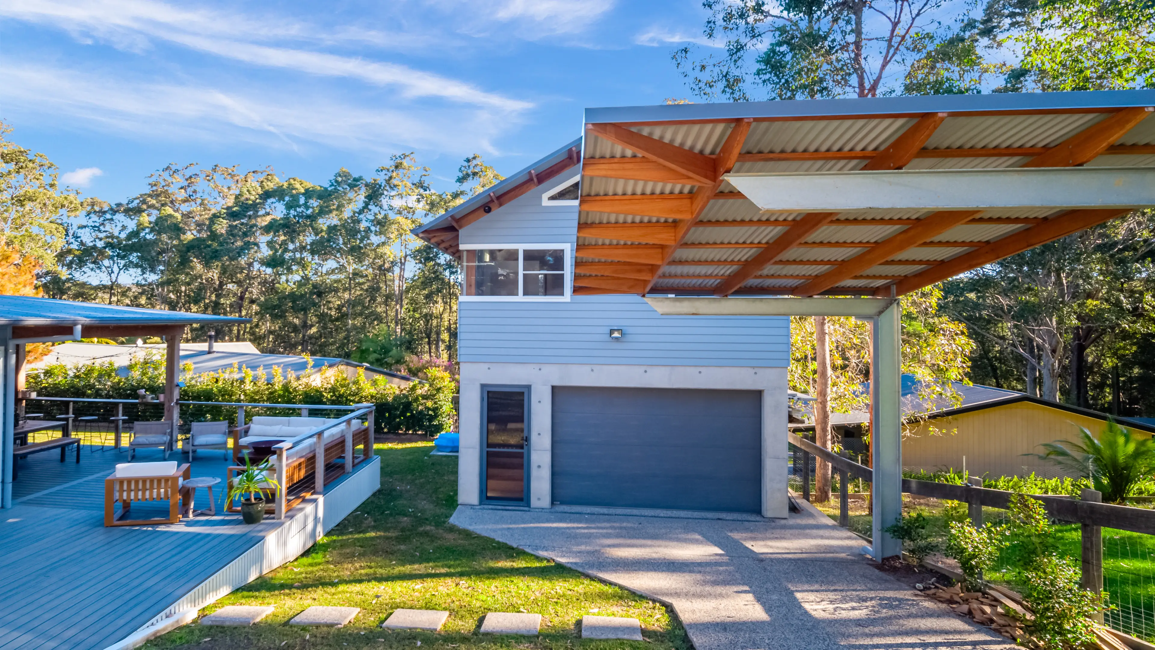 On the exterior, hardwood eaves add warmth and character which is paired with light blue weatherboards, creating a continuation of the modern, yet timeless look experienced throughout. Off-form concrete walls of the detached shed make this a highlight on the property and the landscaping creates distinctive areas throughout that effortlessly open up to one another.